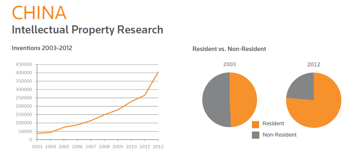 China has surpassed all other G20 countries to be the number 1 countries to create the most inventions. Interestingly just over 75% of the patents filed are done domestically by the China’s residents. (Source link.)