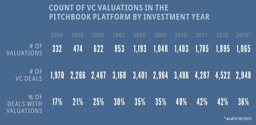 Above: The growing trend of valuation based VC deals from one private equity and venture capital research database firm called Pitchbook who has over 11,000 valuations on privately backed companies. (Source link.)