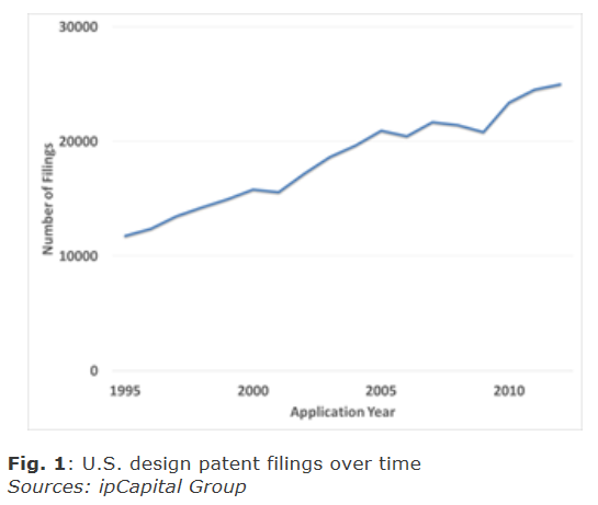 From smartphones to yoga clothing, sinks to software icons, design patents are the trending asset in intellectual property (IP) circles. Investments in design patents, which protect an article’s look or ornamental design, have been steadily increasing over time (see Fig. 1). Based on recent trends, we expect an increase in strategic focus on this IP asset, which will likely include an influx of new design applications into the U.S. Patent & Trademark Office (USPTO), as well as other patent offices around the world.