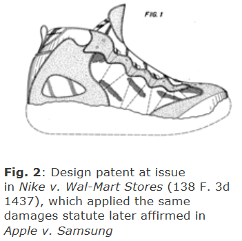 In the notable Apple v. Samsung smartphone IP war [1], Apple extracted roughly $400 million dollars of damages based on three design patents [2]. The damages equated to the total profit on the sale of the accused Samsung phones, not just the profit related to the designs or ornamental aspects actually covered by the patents in question. The award is attributable to the 1887 design patent statute that, unlike utility patents, eliminates the need to apportion between patented designs and infringing articles.2. Scope