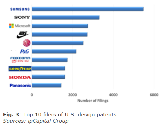 Many different companies & industries invest in design patents as part of their IP strategy (see Fig. 3). For example, Nike’s FuelApp is protected by about 20 design patents [6]. For those looking to do the same, here are several guiding principles for defining future actions that your organization should consider:-
